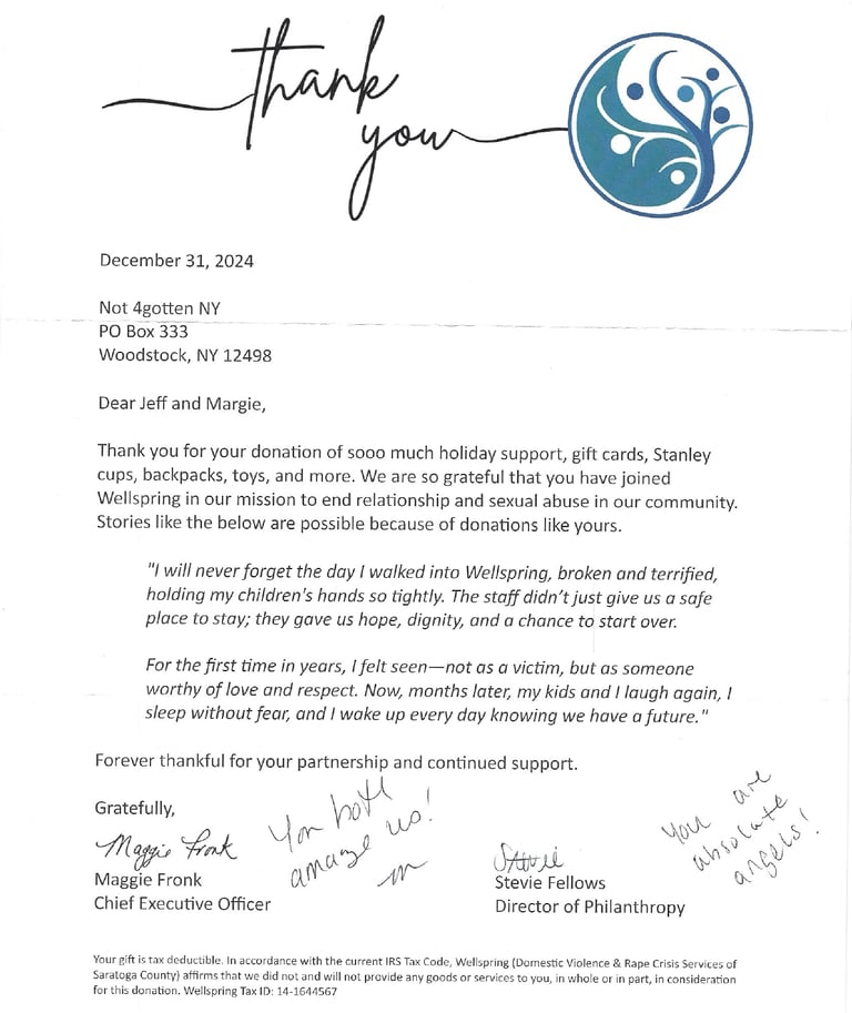 "Words can never fully express the depth of our gratitude for your kindness and generosity. This Christmas, because of you, my children and I are experiencing something we never thought possible—a holiday filled with joy, love, and hope. After escaping a nightmare of abuse, starting over felt impossible. But the gifts and support you’ve given have transformed our lives. Your thoughtfulness has shown my children that there is still good in the world, that they are valued, and that brighter days are ahead. You’ve given us more than material items—you’ve given us a sense of belonging and a reminder that we are not alone. From the bottom of our hearts, thank you for being the light in our darkest moments. You are part of the miracle that is helping us rebuild our lives."